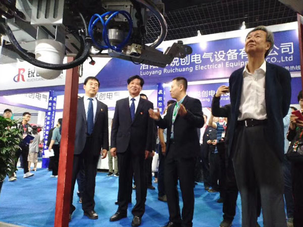 会展当天,务院发展研究中心原副主任卢中原、洛阳市委副书记、市长刘宛康、河南省科技厅副厅长刘英锋、副市长侯占、贺敏等相关导行莅临圣瑞机器人站台深入交流,对“河洛英才计划”团队所取得的成绩赞赏有加。